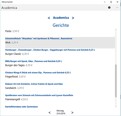 "Mensa Aachen" is an App that helps you with the canteens in Aachen. The key features include: